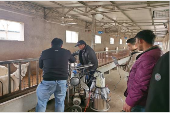 “共赴牧业”项目团队围绕渭南市蒲城县奶山羊产业发展的迫切需要,针对羊舍环境差、奶山羊族谱信息缺失、奶山羊疾病和免疫监控缺失以及实时检验手段落后等多个难点痛点,以人工智能技术为依托,以科技帮扶为抓手,集聚人才、智力和科技资源,开发了“奶山羊智慧养殖及管理平台”,完善推进科技富农、产业兴农、人才助农。为了准确了解奶山羊养殖过程中的各种问题和获得详实数据,团队成员多次深入蒲城县党定村羊场开展调研,与养殖户深入交流了解实际困难及需求,还与当地村政府合作共建了蒲城县奶山羊产业智慧养殖数据中心。